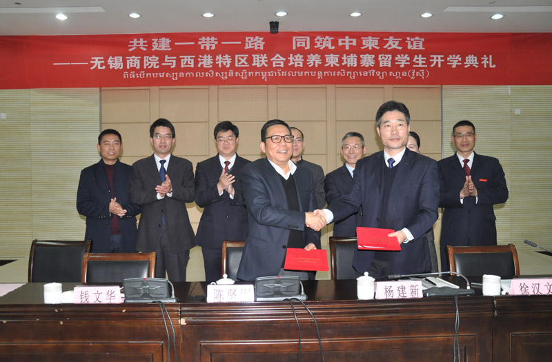 12月23日,9名由西港特區(qū)公司資助的柬埔寨學(xué)生在無(wú)錫商院參加了“共建一帶一路 同筑中柬友誼——無(wú)錫商院和西港特區(qū)聯(lián)合培養(yǎng)柬埔寨留學(xué)生開(kāi)學(xué)典禮”儀式,未