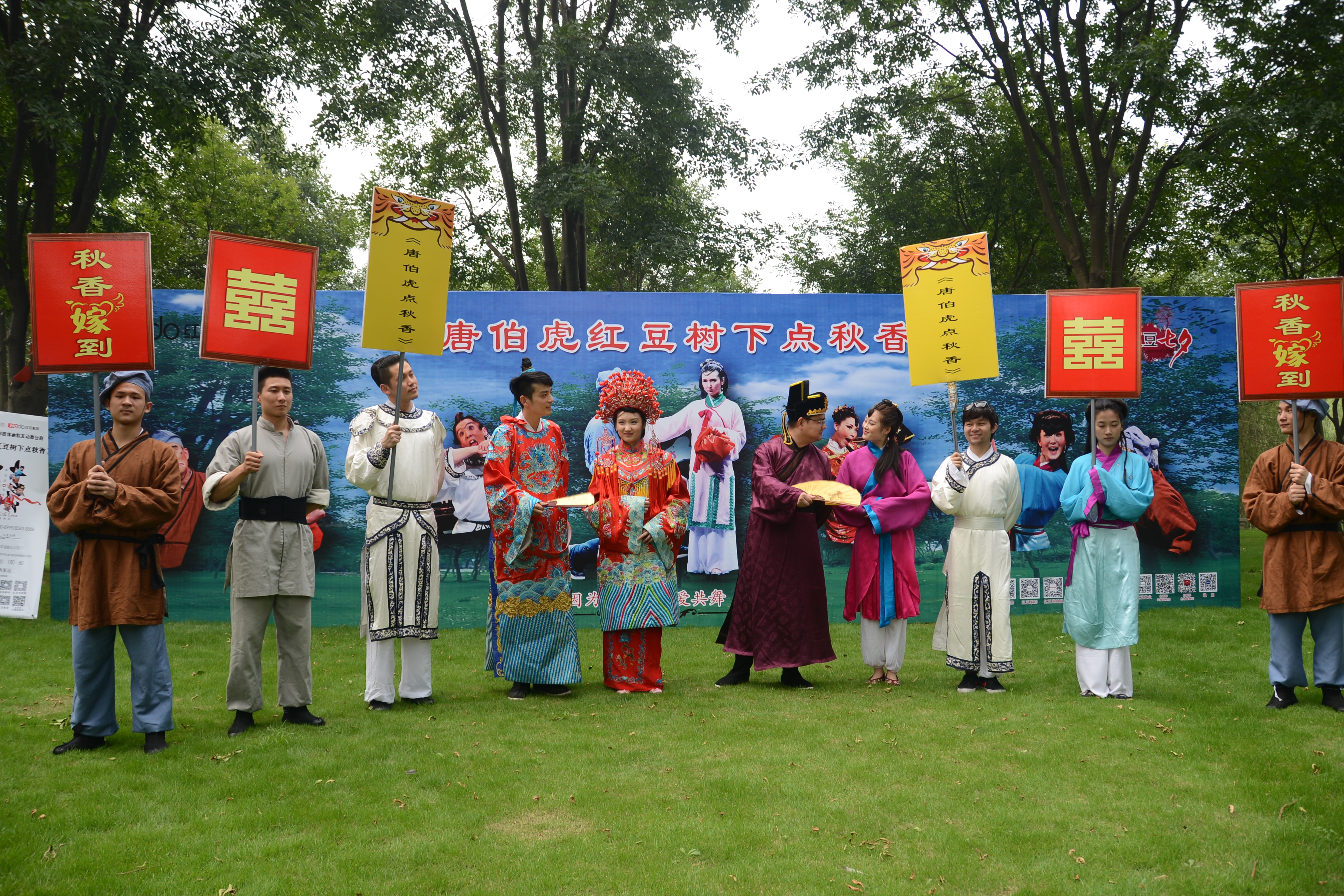 唐伯虎紅豆樹下點秋香。七夕明月夜,千里共嬋娟。唐伯虎點秋香,這個浪漫的愛情故事不知羨煞了多少有情人。七夕夜,唐伯虎、秋香這對才子佳人,穿越時空隧道,來到浪漫的紅豆樹下,以現(xiàn)代人的時尚方式,把他們的經(jīng)典愛情故事,通過夸張幽默的肢體語言演繹出來,給廣大觀眾端上了一道不一樣七夕大餐。為了使唐伯虎點秋香更好看,劇組還突破以往故事傳統(tǒng),融入相思紅豆的構思,以愛情為橋梁,嗩吶、吹笙喜氣洋洋,鳴徹紅豆樹,大紅喜服、珠釵搖曳步步含情,唐伯虎與秋香在紅豆樹下定情。唐劇還有一大看點,就是與唐伯虎送給秋香的定情信物,相信是所有看唐劇的人非常關心的。唐伯虎的這個大才子,不愧是文人,他送給秋香的兩顆殷紅似血的紅豆象征愛情堅貞不渝。相信,紅豆將代替玫瑰,成為情人間新的愛情信物。總之,由紅豆集團獨家冠名的中國第一部肢體幽默互動舞臺劇“唐伯虎紅豆樹下點秋香”一定“憋死觀眾、笑死觀眾”,重溫經(jīng)典愛情故事,更添紅豆七夕節(jié)日的喜氣。