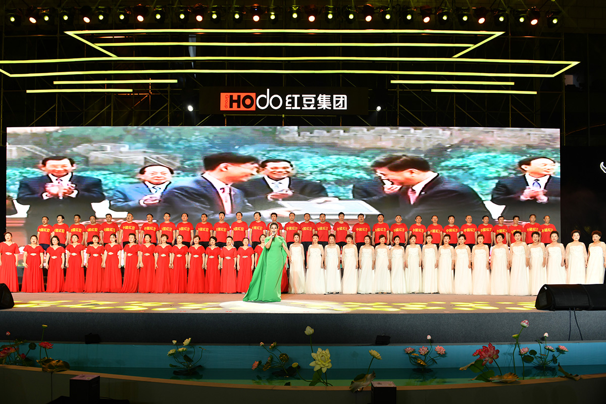 隨著音樂緩緩響起,扮演成“牛郎”和“織女”的男女舞蹈演員,在臺上翩然起舞,演繹著神話傳說中的“愛情故事”,晚會就在這支歌舞《七夕,我們的節(jié)日》中拉開了序幕。據(jù)悉,為打響企業(yè)文化優(yōu)質(zhì)品牌,弘揚積極向上的紅豆勵志精神和拼搏精神,紅豆集團特別邀請了全國及全省內(nèi)外有非凡影響力和創(chuàng)作能力的詞作家、曲作家、音樂家來紅豆采風,精心創(chuàng)作了一組《紅豆組歌》。晚會上,觀眾們首次欣賞到了《紅豆組歌》的所有原創(chuàng)歌曲。