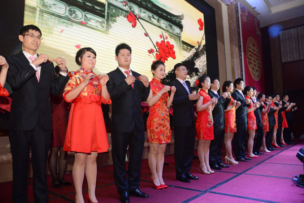 在紅豆,有著無數(shù)個這樣的故事等待我們挖掘。這些紅豆人因為紅豆情文化而扎根企業(yè),從而也吸引更多的人選擇在紅豆扎根。紅豆是有形的情,在紅豆,每個員工都會感受到家庭溫暖。此次紅豆樹下的婚禮,紅豆為紅豆員工打造美輪美奐的婚禮,精心安排各種獨具紅豆特色的環(huán)節(jié)。鵲橋相會、恩愛宣誓、紅豆樹下鎖同心、新人共放荷花燈,紅豆情緣等等系列戶外儀式,演繹著新人相識相戀相愛的浪漫故事。紅豆集團還為新人們送上紅豆緣定制首飾、定制旗袍、紅豆形象男裝等具有濃厚中國風(fēng)的新婚賀禮,共邀新人的親朋好友參加這場最浪漫的新中式集體婚禮,以紅豆之名見證最美的愛情。