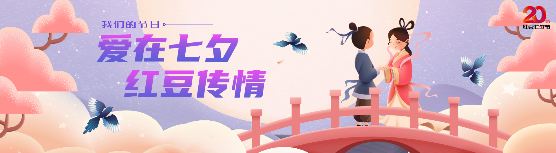 ? ? ? ? 從2001年紅豆集團(tuán)首次推出自己的品牌節(jié)日——紅豆七夕節(jié),“情文化”始終是紅豆七夕節(jié)的主基調(diào),此后,歷年來都在為打造中國情人節(jié)而努力,至今已走過二十年。二十為“廿”!紅豆集團(tuán)始終致力于傳承與弘揚(yáng)七夕文化,撣去覆蓋其上的厚重積塵,回歸節(jié)日的精神本真;相思為“念”,紅豆集團(tuán)始終不忘“讓古老的七夕節(jié)重回當(dāng)代中國人的生活,使文化自信落地生根”的諾言,身體力行的倡導(dǎo),使七夕節(jié)成為當(dāng)代“全城熱愛”的傳統(tǒng)佳節(jié)之一。這是讓所有紅豆人都感到欣喜的成果,也是紅豆送給所有紅粉們的一份禮物!