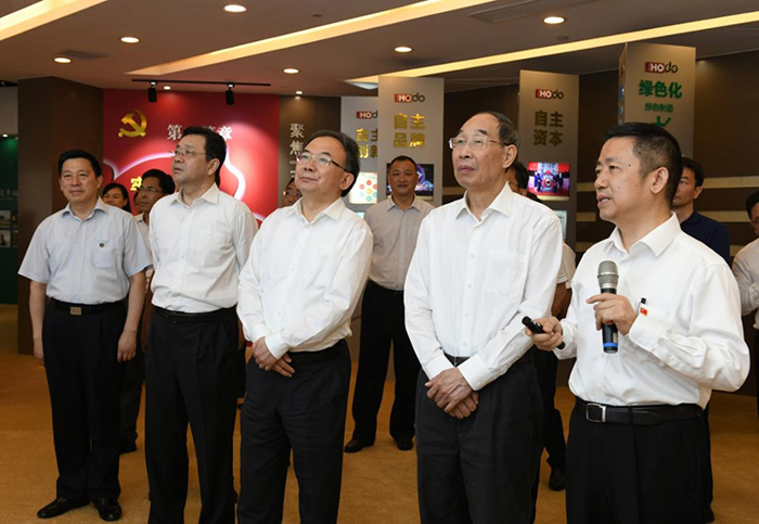 7月10日,中共中央書記處書記、中央統(tǒng)戰(zhàn)部部長尤權(quán)來錫,深入民營企業(yè)調(diào)研非公經(jīng)濟發(fā)展情況。他強調(diào),要堅持以習近平新時代中國特色社會主義思想為指引,把鼓勵、支持、引導民營經(jīng)濟發(fā)展的政策落地落實,促進非公有制經(jīng)濟持續(xù)健康發(fā)展。省委常委、省委統(tǒng)戰(zhàn)部部長楊岳,省委常委、市委書記李小敏參加調(diào)研。當日下午,尤權(quán)來到紅豆集團,先后參觀了紅豆黨建館、紅豆男裝智慧門店、紅豆工業(yè)城、紅豆杉盆景育苗大棚等地。在紅豆黨建館,紅豆集團黨委書記、董事局主席兼CEO周海江向尤權(quán)介紹了紅豆創(chuàng)立現(xiàn)代企業(yè)制度+企業(yè)黨建+社會責任“三位一體”的中國特色現(xiàn)代企業(yè)制度,及企業(yè)黨建成果、企業(yè)發(fā)展等情況。