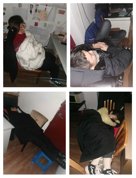 于是大家都開始打電話回家。過一會,到了小區(qū)封門的時間,雨還在一點一點的下。辦公室里沒被子,也沒更多保暖衣物,更不可能有床。幾個物業(yè)人你看看我,我看看你,女同志就緊挨在一起,靠在沙發(fā)上,閉上眼睛,能休息就休息一會兒!兩個男同志找來幾張凳子拼湊在一起,當個簡易床躺一會兒。半夜不舒服了,坐起來走一會兒,就這么著天開始亮了。