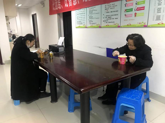 而在場的9名紅豆物業(yè)工作人員,都有些蒙,19天的抗疫工作以來,還是首次遇到這種情況,現(xiàn)在情況未明大家該怎么辦?是否也要“自我隔離”?這時已有14年黨齡的紅豆萬花城物業(yè)張麗萍經理鎮(zhèn)定下來,她讓大家冷靜,并立即咨詢醫(yī)院,得知兩小時后會出初步結果,就讓大家集中在一個辦公室,不要走動,手上工作盡可能用電話和信息的方式處理。