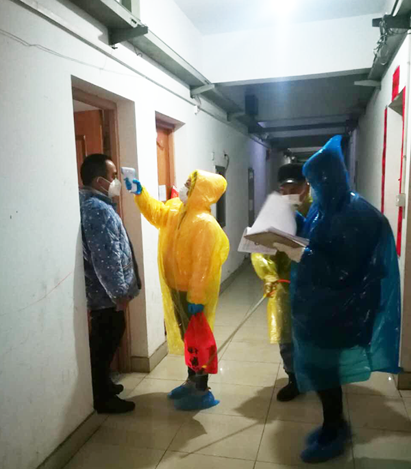 作為一名后勤人員,謝芳一面忙于協(xié)調(diào)物資保障等各項工作,一面還不忘加強宿舍管理,對居住在公司宿舍的同事逐一上門拜訪、排查,做好防疫消殺、測量體溫、發(fā)放口罩、信息統(tǒng)計、宣傳疫情防控知識等工作,也為大家“寬寬心”,鼓鼓勁。