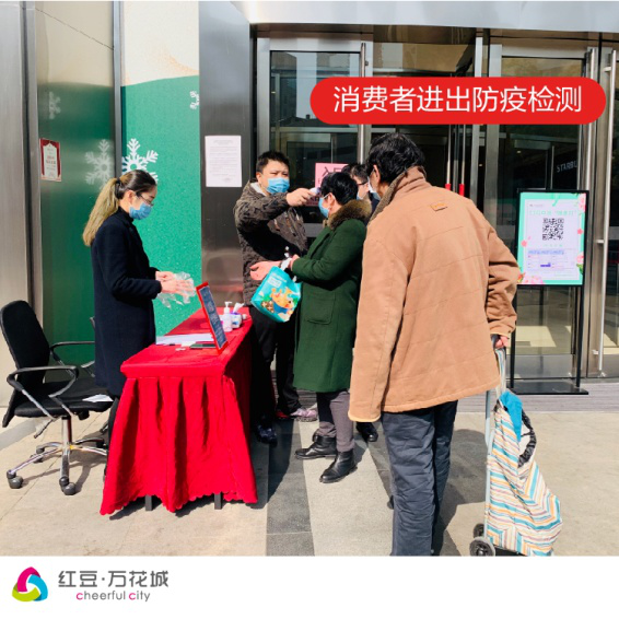 隨著復(fù)工復(fù)產(chǎn)后人員的密集性流動(dòng),為了更好的開展防疫與經(jīng)營(yíng)兩手抓,紅豆萬(wàn)花城一方面,絕不松懈場(chǎng)內(nèi)的每日定時(shí)消毒衛(wèi)生工作,并要求各部門每日對(duì)員工、商戶、顧客進(jìn)行體溫檢測(cè),掃描進(jìn)出人員“錫康碼”并做好人員流動(dòng)登記,切斷外部傳播途徑,控制疫情的傳播和蔓延,為顧客做好安心的后勤保障工作,為商戶復(fù)工創(chuàng)造安全健康的經(jīng)營(yíng)環(huán)境。