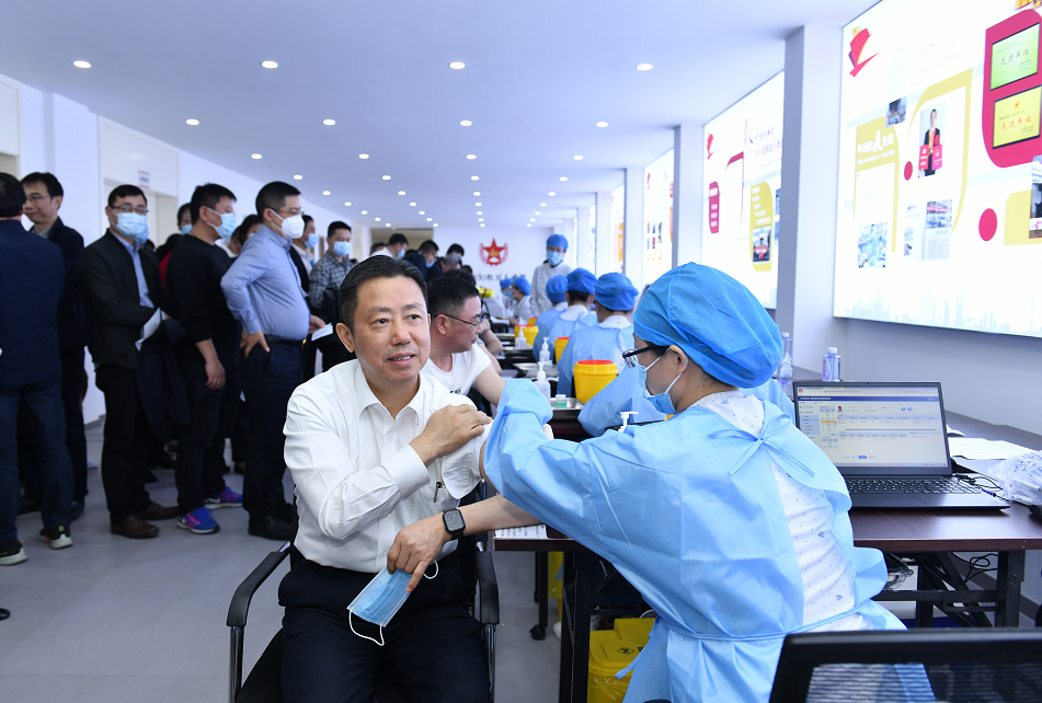 3月30日下午2點,在紅豆大學(xué)新冠疫苗臨時接種點,全國抗擊新冠肺炎疫情先進(jìn)個人、全國優(yōu)秀共產(chǎn)黨員,紅豆集團(tuán)黨委書記周海江進(jìn)行新冠疫苗接種動員,并第一個完成接種,標(biāo)志著紅豆集團(tuán)集中接種工作正式開啟。錫山區(qū)衛(wèi)健委主任徐建東現(xiàn)場動員并解答了接種新冠疫苗的注意事項。