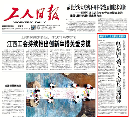 作為唯一入選全國產改項目試點的民企,江蘇紅豆集團積極探索在非公企業(yè)開展黨建工作的方式方法,出臺《黨建帶工建推進產業(yè)工人隊伍建設改革試點工作方案》,全面實施“四鑄四有”工程,著力改革創(chuàng)新紡織行業(yè)產業(yè)工人隊伍建設體制機制、方式方法,為集團產業(yè)強企提供動力和保障,為全國產業(yè)工人隊伍建設改革探索“紅豆樣本”。