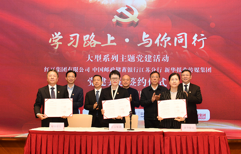 活動(dòng)上,紅豆集團(tuán)有限公司、中國(guó)郵政儲(chǔ)蓄銀行江蘇分行、新華報(bào)業(yè)傳媒集團(tuán)三方舉行了黨建共建簽約儀式,來(lái)自三方的一線黨支部也進(jìn)行了結(jié)對(duì)共建。這也是繼去年12月在徐工集團(tuán)成功開啟首場(chǎng)“學(xué)習(xí)路上?與你同行”暨“一路‘郵’你”主題黨建活動(dòng)之后舉辦的第二場(chǎng)大型活動(dòng)。