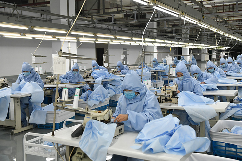 2月5日下午,走進(jìn)紅豆股份新建成的西服車間,只見一派熱火朝天的繁忙景象。面對疫情,這個(gè)新車間一夜之間被改造成的防護(hù)服生產(chǎn)車間,200多名工人戴著口罩,正在加緊趕制防護(hù)服。“防護(hù)服是緊缺的醫(yī)療物資。為了支援抗疫前線,我們2月1日啟動了防護(hù)服生產(chǎn)?!奔t豆股份常務(wù)副總經(jīng)理顧金龍介紹,起初,大家心里都沒底,畢竟沒涉足過這個(gè)領(lǐng)域。但紅豆股份有成熟的服裝生產(chǎn)技術(shù),為一般防護(hù)服實(shí)現(xiàn)快速生產(chǎn)創(chuàng)造了有利條件。