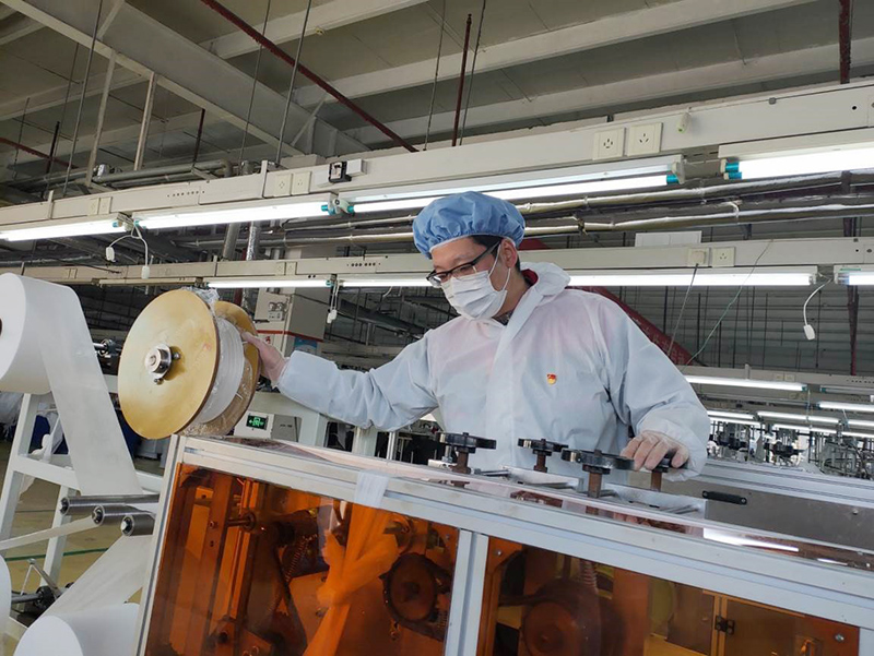 尚慶軍,紅豆黨員突擊隊的一位“拼命三郎”。已有9年黨齡的尚慶軍,不僅要做好疫情防控的“守門人”,檢測和登記每一位進出人員的體溫,同時早中晚三次還要對工廠的各個角落進行消毒,確??谡稚a(chǎn)線改造順利進行?!皬?月2號開始上班,已經(jīng)連續(xù)20多天沒有陪伴家人?!鄙袘c軍說,“看著原材料從入口進去,一只只潔白的口罩從出口自動下線,我就感覺特別激動,特想哭?!?/span>