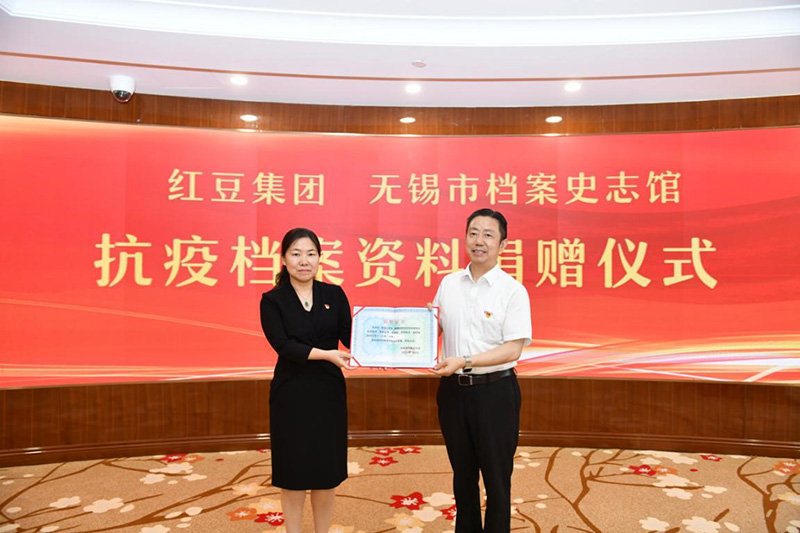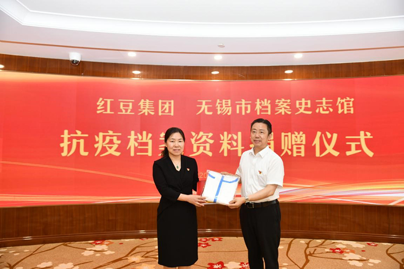 無錫市檔案史志館系統(tǒng)、深度、精準(zhǔn)地挖掘開發(fā)檔案史志資源,不斷提升新形勢(shì)下檔案史志工作水平,服務(wù)發(fā)展大局、服務(wù)社會(huì)民生,為無錫經(jīng)濟(jì)的高質(zhì)量發(fā)展作出了積極貢獻(xiàn)。紅豆集團(tuán)作為全國先進(jìn)基層黨組織,在疫情防控期間,凝聚強(qiáng)大力量,積極支持一線抗疫,勇?lián)?zé)任,為抗疫前線提供支持與保障。此次,雙方舉行檔案史料相互捐贈(zèng),既是對(duì)這場(chǎng)戰(zhàn)疫的永恒銘記,也是對(duì)這場(chǎng)人民抗疫戰(zhàn)爭(zhēng)的最好致敬。